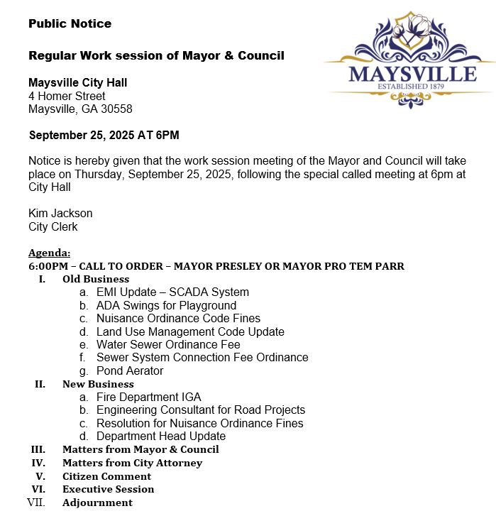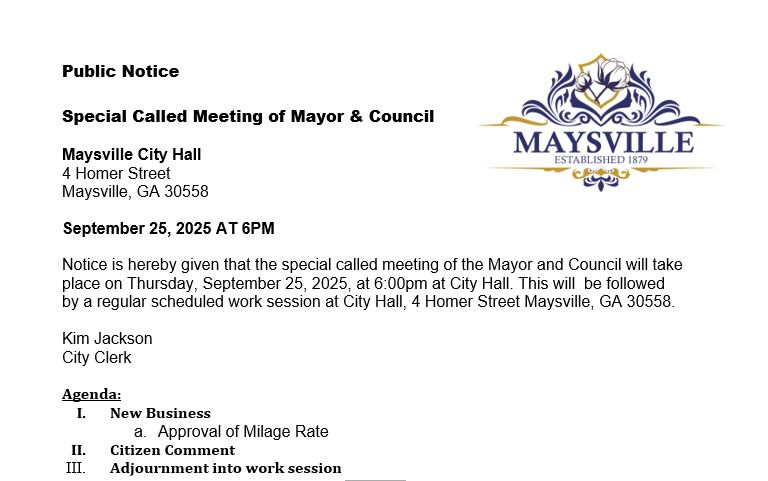 Special Called meeting and workshop of Mayor and Council, Thursday, September 25, 2025