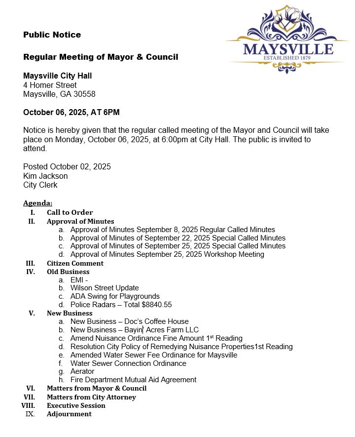 Regular scheduled meeting of Mayor and Council, October 6, 2025