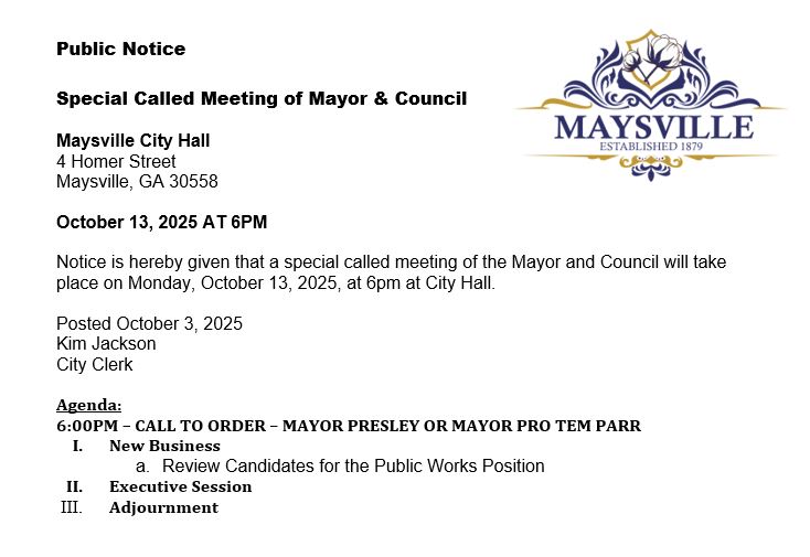 Special Called Meeting of Mayor and Council, October 13, 2025