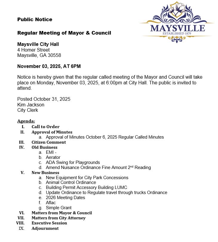 Regular Scheduled Meeting of Mayor and Council, November 3, 2025, at 6pm