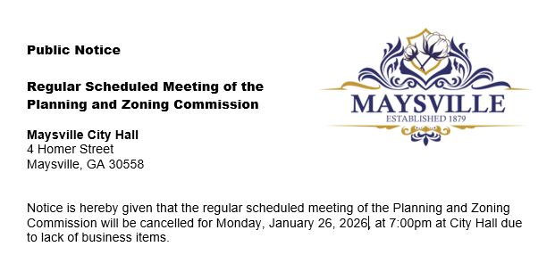 Cancellation of Planning and Zoning Meeting January 26, 2026