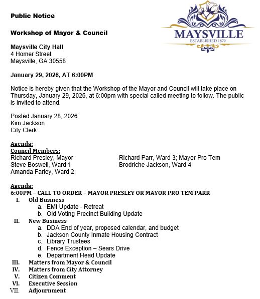 Workshop of the Mayor and Council Thursday, January 29, 2026, 6:00pm